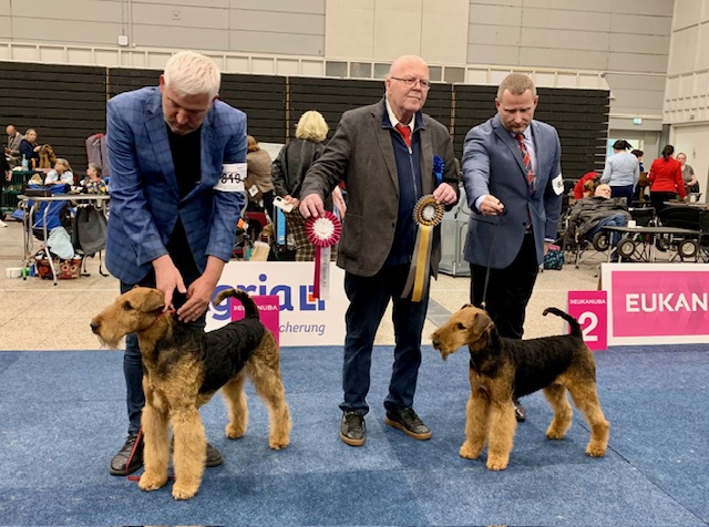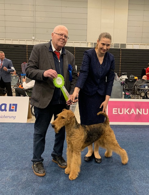 Am Freitag waren 10 Airedale gemeldet, wovon 8 anwesend waren und sich dem Urteil von Morgan Granander aus Schweden stellten. Jeweils mit dem CACIB wurde der Rüde Rockridge Jp Ohkimi aus Rumänien BOB und Sirocco‘s Pride Vision Of Freedom aus Belgien BOS.
