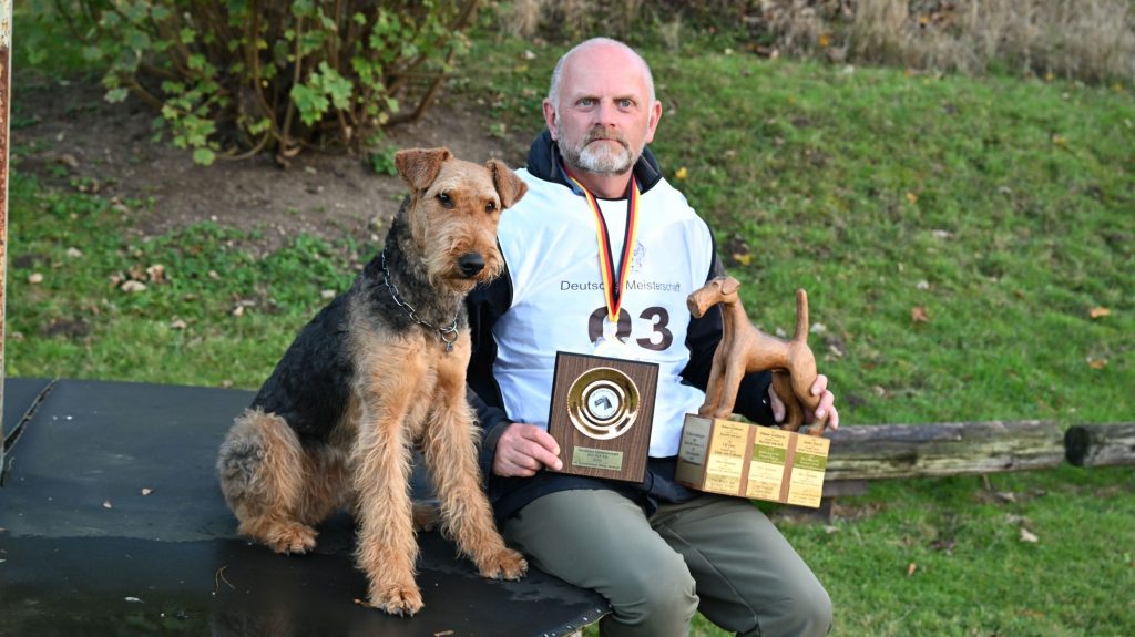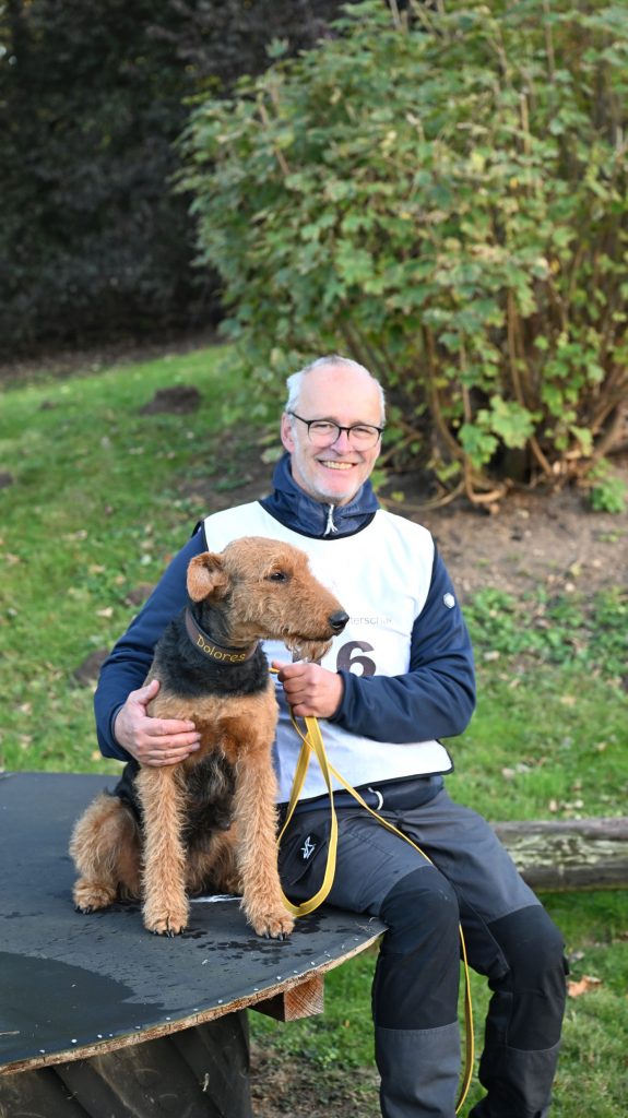 Uwe Ritthammer mit seinem Airedale Rüden Gargamel von der Laubenhaid. Das Team konnte den 7. Platz belegen.
