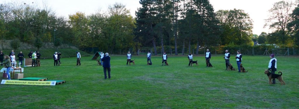 An diesem Wochenende trafen sich die besten Fährtenteams des Klub für Terrier. Neben Airedales-, zwei Border-, wurden auch je ein Kerry-Blue- und ein Irish Terrier geführt. Insgesamt hatten sich 25 Teams qualifiziert. Für die Qualifizierung sind jeweils drei Prüfungen in dem jeweiligen Sportjahr nachzuweisen. Hohe Punktzahlen bei den Qualifizierungsprüfungen ließen auf einen spannenden Wettkampf hoffen. Der Schnitt bei den Vorprüfungen lag bei sehr guten 92 bis zu vorzüglichen 99,7 Punkten. Und so sollte es auch kommen.