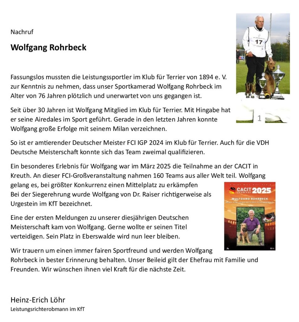 Gepostet von ritthammer | Sep. 9, 2025 | Airedale News, Hundesport, Nachruf | 0