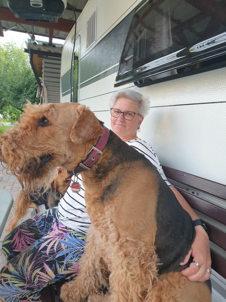 Sie ist freundlich, unkompliziert und möchte am liebsten immer bei ihren Menschen sein. Casandra fährt sehr gerne Auto und hört für einen Airedale richtig gut.