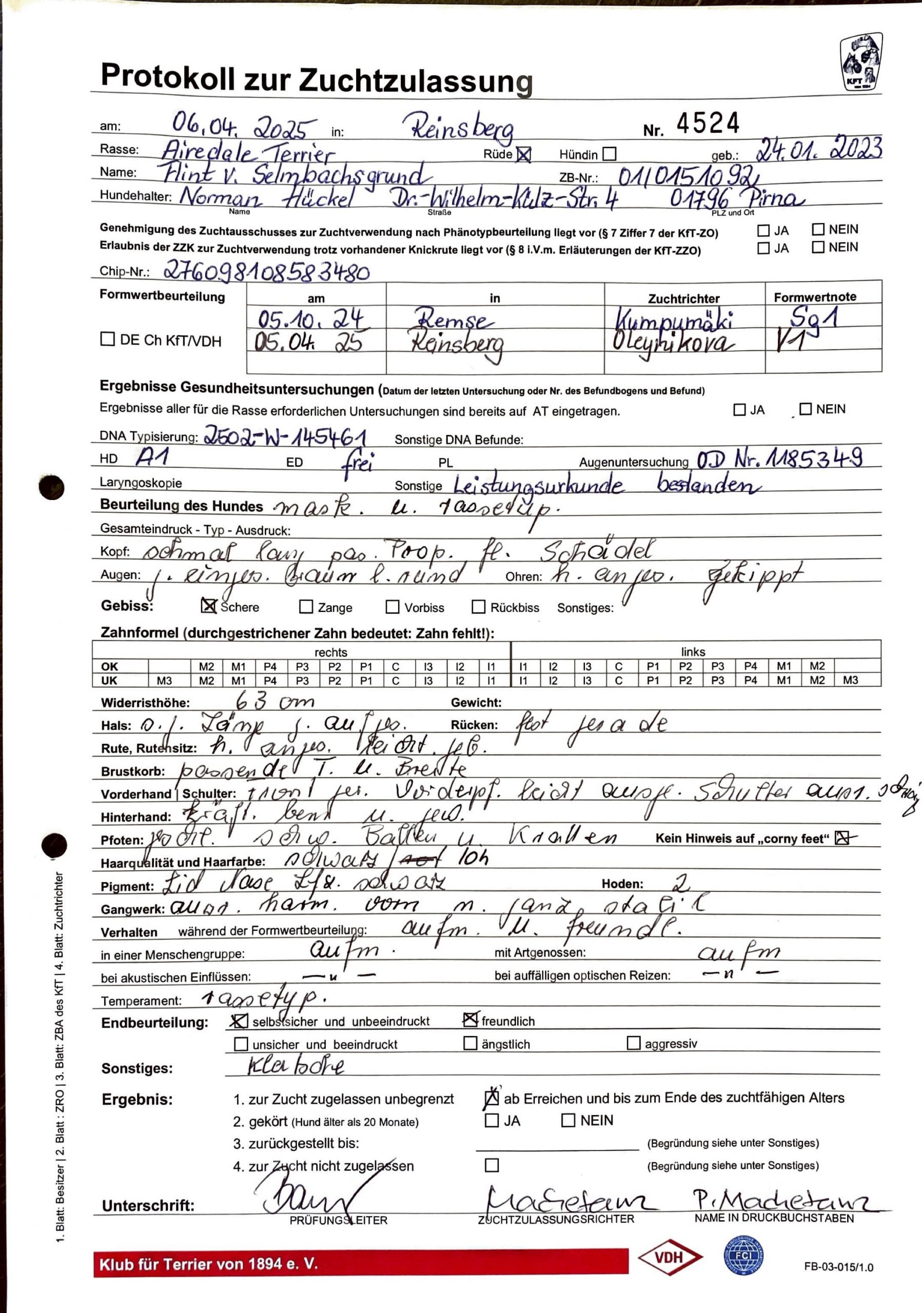 • Zuchtzulassungen